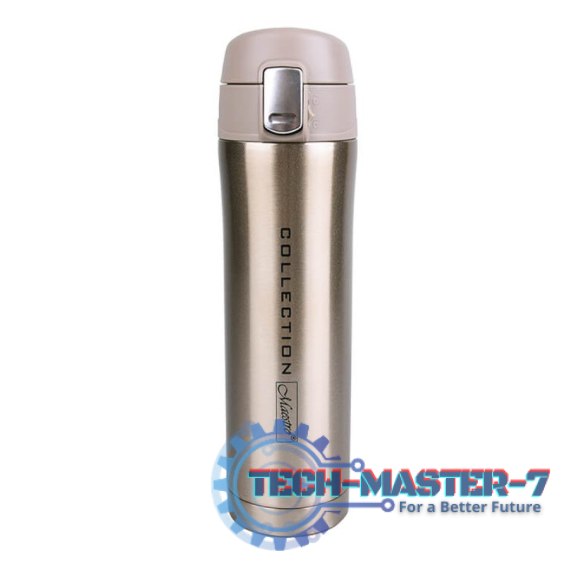 Wyposażony w korek otwierany za pomocą przycisku oraz wygodny "dziubek" do picia, umożliwia picie bez konieczności odkręcania pokrywy. Dodatkowo posiada blokadę otwierania, która zapobiega przypadkowemu wylaniu napoju. Kubek jest szczelnie zamykany dzięki podwójnej uszczelce, a jego obudowa ze stali szczotkowanej nadaje elegancki wygląd.