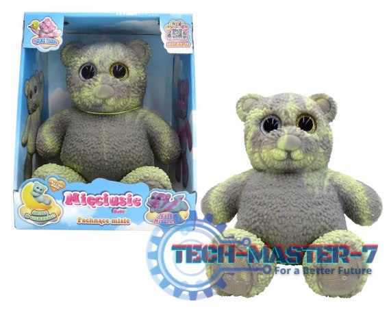 Wewnątrz Mięciusie są wypełnione włóknem przypominającym chmurkę, co sprawia, że są wyjątkowo miękkie. Dodatkowo rozciągają się, a gumowa struktura zewnętrzna sprawia, że bez problemu wyczyści się je wilgotną ściereczką. Mięciusie mają także funkcję świecenia w ciemności, do czego nie potrzeba baterii. Mięciusie to naprawdę wyjątkowe misie. Każdy Mięciuś ma inne kolory i wzór oraz inny kolor oczu - co odpowiada jego osobowości i cechom charakteru.