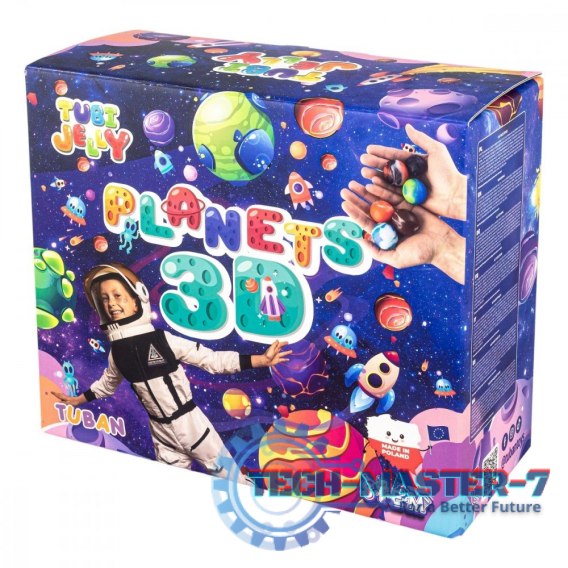 Tubi Jelly PLANETY to zestaw do zabawy, który pozwala na samodzielne stworzenie żelowych planet Układu Słonecznego oraz kolorowych sprężystych kul w różnych rozmiarach.